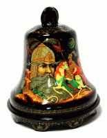 Russian Lacquer Box Hand Painted Signed Fairy Tale Ruslan & Lyudmila Bell Shape #132