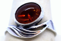 Baltic Genuine Amber Ring in 925 Sterling Silver Setting - Handmade #60