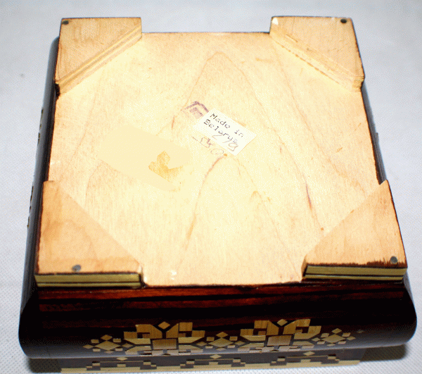 | RUSSIAN STRAW INLAY BOX - STRAW -LARETS-Large $49.95 This unusual shape box-larets is completely hand made of wood in Belarus, USSR. It is decorated with straw. Look what kind of skill is involved in this work!!!! Each piece of straw is hand cut and glued on the wooden surface by the Belarusian artist. Can you imagine how much time was spent to make this box? The interior of the box is beautifully lined with different color fabric. You can use it for jewelry or any other purposes. These boxes are wonderful gifts for any occasion. Also, they are very collectible because they were made in USSR. Size 6x6x3.5h'', lined with fabric. Because the boxes are hand made and one of a kind straw design and color of lined fabric may slightly vary.