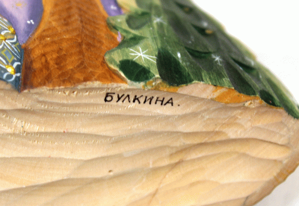 | RUSSIAN CHRISTMAS PRESENT - WOOD CARVED AND HAND PAINTED SANTA #20 $349.95 This Russian wood carved and hand painted Santa is the great idea for Christmas gift. It is carved from one piece of wood (except bird which is removable), intricately hand painted and signed by Russian artist Bulkina from Moscow, Russia. This Russian Santa will make your Christmas happy. Enjoy the very rare Santa. Size is 10.5 x 5.5 x 3 inches. Please check other pages of our website for Christmas ornaments and Christmas nesting dolls.