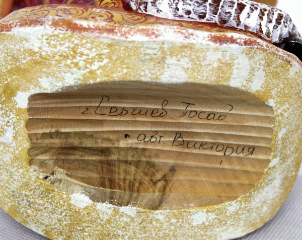 | Russian Vintage Christmas Wood Carved & Hand Painted Santa in Rocking Chair #45 $359.00 This Russian wood carved and hand painted Santa is the great idea for Christmas gift. It is carved from one piece of wood. Hand painted and signed by Russian artist Viktoriya, Sergiev Posad, Russia. The bottom of Santa chair is curved; this unusual shape of carving let Santa rocks in his rocking chair. This Russian Santa will make your Christmas happy. Enjoy the very rare Santa. Size is 7 x 6 x 4 inches. Excellent vintage condition. Please look carefully at the pictures, as they are parts of the description. You will get the Santa you see on the pictures. Ship from Texas in 2 business days. Please check other pages of our website for Christmas ornaments and Christmas nesting dolls.