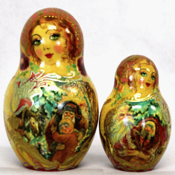 | Russian Nesting Doll coming with copy of FAIRY TALE Morozko #176 $499.95 Russian Island is selling ONLY Russian made dolls !!! No cheap copies, all the dolls are authentic !!! This doll is hand painted in Sergiev Posad, Russia and signed by Russian artist Vinogradova, 10 pieces, H 9.5 inches. It is very unique,beautifully painted. One of a kind, you will receive the doll you see on the picture. The doll is coming with the copy of Russian Fairy Tale Morozko in English. Please visit other pages of our website for more original authentic Russian collectibles and souvenirs.