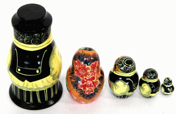 | RUSSIAN NESTING DOLL - hand made in RUSSIA MATRIOSHKA - JEWISH FAMILY #134 $89.95 Russian Island is selling ONLY Russian made dolls !!! No cheap copies, all the dolls are authentic !!! This doll is intricately hand painted in Russia, Sergiev Posad, and signed by Russian artist, 5 pieces. H 3.75 inches. The doll is one of a kind, you will receive exactly the doll you see in the picture. It is very nice piece for collection. Please visit other pages of our website for more original authentic Russian collectibles and souvenirs.