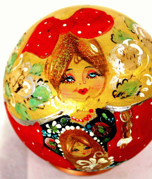 | RUSSIAN NESTING DOLL MATRIOSHKA HAND PAINTED IN RUSSIA # 117 $99.95 We are selling this doll from huge owner collection which was created from 1970th to 1990th. This is an original doll hand painted in Russia and signed by Russian artist in 1993. The artist added wood burning for decoration. This doll is authentic, no cheap copy!!! This is a rare Russian nesting doll Matrioshka with very rare shape of the ball. This rare 3-piece nesting doll set is a great collectible item. Size – 4.25 inches. The doll is one of a kind. You will receive exactly set what you see on the pictures. Please visit other pages of our website for more original authentic Russian collectibles and souvenirs.