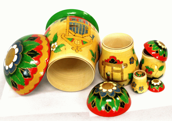 | Russian Nesting Doll Matrioshka Hand Painted & Signed,Wood Burnt In Russia #114 $199.95 We are selling this doll from huge owner collection which was created from 1970s to 1990s. This is a very unusual nesting doll made in shape of mushroom. The doll is hand painted and wood burnt all around in Sergiev Posad, Russia and signed by Russian artist Sokolova in 1997. Great for collection. Size 6.25'', set of 5. Russian Island is selling ONLY Russian made dolls!!! No cheap copies, all the dolls are authentic!!! In Russia making wooden objects which fit each inside other has many Centuries tradition. Gradually these figurines became to be carved in the shape of dolls. These dolls were made and painted by Russian craftsmen. This fabulous Russian doll was given the name MATRIOSHKA [matryoshka, matreshka] which originated from root of the word maternity. It became a symbol of FERTILITY and PERPETUATION. It is a good luck present for a very long time. Excellent vintage condition but it might have very small imperfections (see picture). Please look carefully at the pictures, as they are parts of the description. Any defects not mentioned but visible in the pictures will be considered as described! You will get the nesting doll you see on the pictures. Ship from Texas in 2 business days.