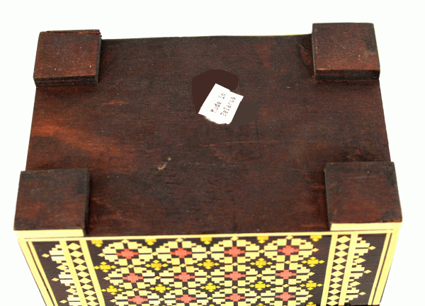 | RUSSIAN STRAW INLAY BOX - CHEST MEDIUM #61 $49.95 This box-chest is completely hand made of wood in Belarus, USSR. It is decorated with straw. Look what kind of skill is involved in this work!!!! Each piece of straw is hand cut and glued on the wooden surface by the Belarusian artist. Can you imagine how much time was spent to make this box? The interior of the box is beautifully lined with fabric. You can use it for jewelry or any other purposes. These boxes are wonderful gifts for any occasion. Also, they are very collectible because they were made in USSR. Size 5.5x4x4h''. Please visit other pages of our website for more souvenirs and collectibles.