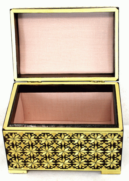 | Vintage Design #20 Handmade in Belarus 1990s Fabric Lined Straw Inlay Chest #64 $47.95 This vintage small hinged box-chest is completely handmade of wood in 1990s in USSR/ Belarus at Belarusian Arts and Crafts Factory located in Zhlobin City. It is decorated with straw. Look what kind of skill is involved in this work!!!! Each piece of straw is hand cut and glued on the wooden surface by the Belarusian artist. If you look carefully you will see that each peace of straw is slightly different because it was cut by hand not by machinery; from other hand the pieces are very similar because of high skill of the artists. Can you imagine how much time was spent to make this box? The interior of the box is beautifully lined with different color fabric. You can use it for jewelry or any other purposes. These boxes are wonderful gifts for any occasion. Also, they are very collectible because they were made in USSR. Size 5.5x4x4H'', lined with fabric. Excellent vintage condition; pictures are part of description. Because the boxes are handmade, design can be slightly different but it is very close to the pictures. The box has Belarusian Arts and Crafts Factory tag. Will ship from Texas in 2 business days.