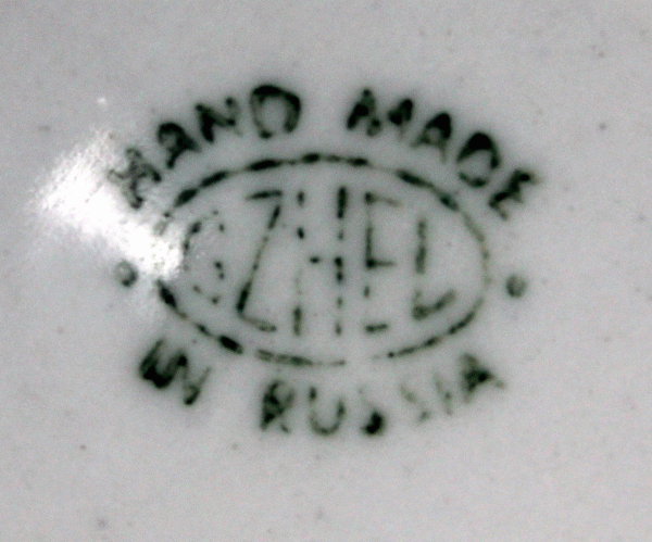 | VINTAGE RUSSIAN BLUE and WHITE PORCELAIN GZHEL -Candle Holder #75 $39.00 This Gzhel candle holder is hand-painted by Russian artist in village of Gzhel in Russia in 1990s. The candle holder has official stamp of Gzhel production factory (see picture). If you are collecting original Gzhel items please be sure that the item has stamp exactly as you see on the picture!!! Diameter is 5 and 3 inches high. Gzhel is the famous blue and white porcelain from Russia. This porcelain takes its name from village of Gzhel located 60 km from Moscow. Blue color Gzhel got from blue cobalt. The name Gzhel originated from the Russian word, which means burn, in the sense of firing clay. The region of Gzhel is famous for its fabulous clay. In the 17-th century Russian Tsar Alexey Mikhailovich learned about super clay and large-scale production began. Porcelain from Russian Gzhel has a long history, from semi-faience to faience, and later to porcelain. Please visit other pages of our website for more Russian/USSR great souvenirs and collectibles.