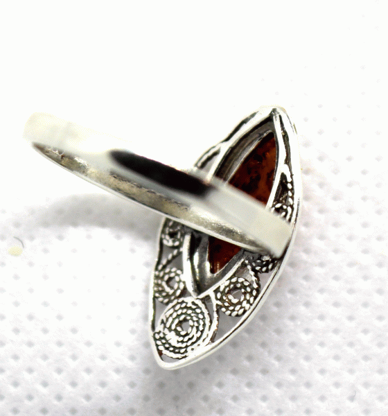 | Baltic Genuine Amber Ring in 925 Sterling Silver Setting - Handmade #55 $29.95 This is beautiful Baltic Sea Genuine Amber ring hand set in 925 sterling silver. Size is 8; size of silver setting 1 x 0.5â€; size of amber stone 0.75â€. Amber is the fossilized, hardened resin of trees, ranging in age from less than a million to more than 300 million years old. This beautiful Baltic Amber has been popular throughout the World for Centuries and is reflected in many of the regions folk tales. Amber Jewels are actually pieces of petrified tree sap and found in only three areas throughout the World. Occasionally, you may find pieces of insects or plants trapped inside these jewels but they are quite rare. Amber has a unique quality of being light enough to float on water and was originally explained through folk tales as being gifts from the young maiden Ambrella to her parents after she was kidnapped by the Prince of the seas. Amber is thought to help absorb negative energy and to release bright, soothing energy, helping to calm nerves and enliven disposition like a mental sunny day. Ancient physicians prescribed amber for headaches, heart problems and arthritis. Amber also is good for babies who are teething. ​ Amber is a powerful healer and cleanser that draws disease from the body and promotes tissue revitalization and it imbues the body with vitality. By absorbing pain and negative energy, Amber allows the body to re-balance and heal itself. ​It resonates with the throat, treating goiters and other throat problems. It treats the stomach, spleen, kidneys, bladder, liver, and gallbladder, alleviates joint problems, and strengthens the mucus membranes. More jewelry you can see at http://russianisland.com/subCategory.php?ID=7