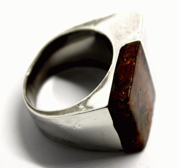 | Baltic Genuine Amber Ring in 925 Very Massive Sterling Silver Setting - Handmade #82 $169.95 This is beautiful Baltic Sea Genuine Amber ring hand set in 925 sterling silver. Size is 12; size of silver setting 1.2 x 1.1 x 0.8â€; size of amber stone 0.8'' (1 stone); weight is 18.5 G. The setting is very solid (see pictures). Amber is the fossilized, hardened resin of trees, ranging in age from less than a million to more than 300 million years old. This beautiful Baltic Amber has been popular throughout the World for Centuries and is reflected in many of the regions folk tales. Amber Jewels are actually pieces of petrified tree sap and found in only three areas throughout the World. Occasionally, you may find pieces of insects or plants trapped inside these jewels but they are quite rare. Amber has a unique quality of being light enough to float on water and was originally explained through folk tales as being gifts from the young maiden Ambrella to her parents after she was kidnapped by the Prince of the seas. Amber is thought to help absorb negative energy and to release bright, soothing energy, helping to calm nerves and enliven disposition like a mental sunny day. Ancient physicians prescribed amber for headaches, heart problems and arthritis. Amber also is good for babies who are teething. ​ Amber is a powerful healer and cleanser that draws disease from the body and promotes tissue revitalization and it imbues the body with vitality. By absorbing pain and negative energy, Amber allows the body to re-balance and heal itself. ​It resonates with the throat, treating goiters and other throat problems. It treats the stomach, spleen, kidneys, bladder, liver, and gallbladder, alleviates joint problems, and strengthens the mucus membranes. More jewelry you can see at http://russianisland.com/subCategory.php?ID=7