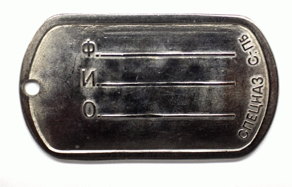 | RUSSIAN MILITARY DOG TAG - MINISTRY OF INTERNAL AFFAIRS OF RUSSIA -8 $15.00 Original Russian dog tag. Made out of stainless steel, approx. size is 2''. On the back there is a place to put information about the person; on the front there is a place to engrave blood type. Unissued.