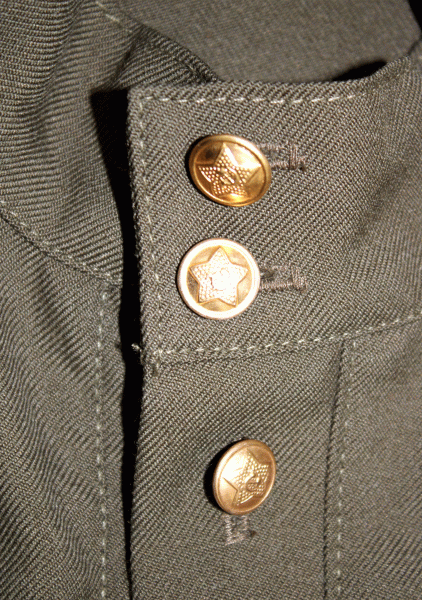 | Soviet Military Repro Model WWII Wool Tunic Gymnasterka & Extra 12 Buttons #44 $129.95 Soviet USSR repro Model 1943 WWII Soviet USSR Army field tunic Gymnasterka. The tunic is made out of heavy wool. This is an exact copy of the 1943 officer wool field tunic – Gymnasterka. For the convenience of the Buyer we will enclose 12 original 1970s Soviet Military buttons which is difficult to find. Tunic sizes: chest size 48'', sleeve 26''. shoulder to shoulder 21'', neck 17'' and length is 31.5''. Great to wear and for collection. Unissued condition (see pictures). Please look carefully at the pictures, as they are parts of the description. You will get the tunic you see on the pictures. Ship from Texas in 2 business days.
