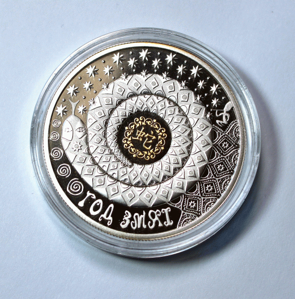 | Belarus Silver 20 Ruble Coin 2012 Year of Snake Chinese Calendar Series #189 $364.95 This is a Belarusian 2012 Silver 20 Rubles PROOF coin from the Year of the Snake series. The coin has a diameter of 38.61mm and weighs 33.63 grams of .925 silver. It features a cubic zirconia gem inlay and gold-plated elements. With a limited mintage of 8,000 pieces, the coin has a rarity index of 85, making it a valuable collector's item. The obverse side displays the emblem of the Belarusian Republic and elements of a clock with a crystal at its center. The reverse features a coiled snake surrounded by stars and ornaments, with a Chinese character in the middle. Both sides were designed by S. Zaskevich. The coin was minted at the Mint of Poland in Warsaw and has a reeded edge. It is in uncirculated, proof mint condition and comes in its original airtight capsule and box from the Belarus Bank and Belarusian Bank certificate of authenticity. You buy what you see on the pictures. Pictures are part of description. Ship from Texas within 2 business days. NOTE: The capsule was not opened; the pictures were made through the capsule plastic; the coin is in superb MINT condition; any imperfections you see are on the plastic.