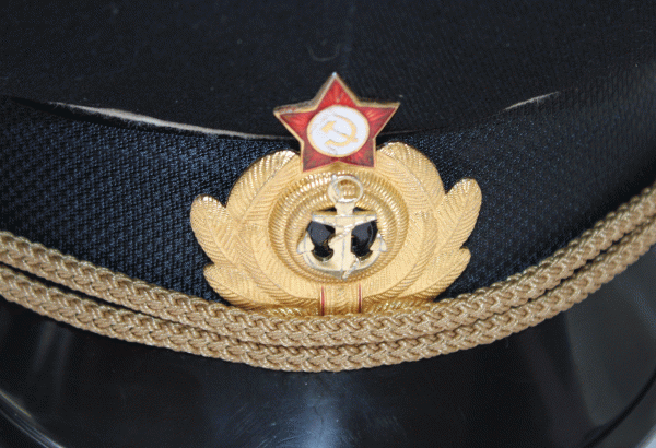 | Vintage Authentic Soviet USSR Navy Warrant Officer Parade Visor Cap Hat with Original Cap Badge #94 $89.00 Soviet Navy Warrant Officer Parade Uniform Visor hat. It is original issue of 1980th , made at the Soviet USSR military factory according to the Ministry of Defense of USSR manual Rules and Regulation of wearing Military Uniform (page 160, picture 125). Great for real collectors and great for wearing. It has an original cap badge and golden braids. It is excellent condition considering the age. Rare for collection. Russian size 58 (22.83 inches circumference or 7-1/4 US size). Original Soviet hats have rigid plate inside in the front. It supports steel spring around the top to keep the shape. Beware of Fakes and Reproductions !!