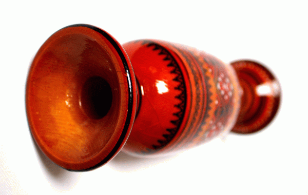 | Vintage Wooden Ukrainian Traditional Geometric Design Vase Handmade Numbered #32 $37.00 This vintage wooden vase is handmade and hand painted in Ukraine in 1980s. It is made out of 1 piece of wood. This wooden vase is absolutely gorgeous and unique. It is painted with traditional Ukrainian geometric design. It is numbered and great for collection, home and office decoration or makes great unique gift. Sizes in inches: 7.75H, upper diameter 2.5 and lower diameter 2.5, middle diameter 2.75. Because all vases are handmade and hand painted the painting can be slightly different.