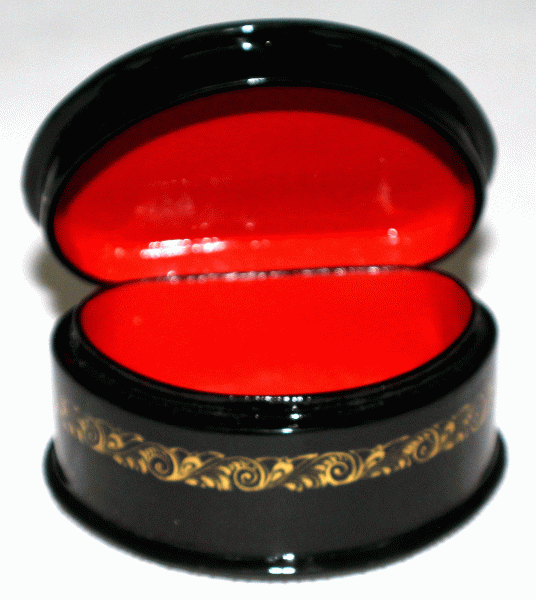 | Russian Lacquer Box 140 - Firebird $65.00 Russian Lacquer Box - Miniatures from the famous Russian fairy tale ''The Humpbacked Pony'' by P. Ershov. Black and white copy of the fairy tale is provided with purchase. School - Palekh, Artist - Davydov. Size - 2.5x1.75x1.25h. At Russian Island we sell only original hand painted Lacquer boxes. It takes a lot of time and skill from highly experienced artists to create a fully hand painted box. We guarantee that our boxes are fully hand painted in Russia by professional artists. There are some on the internet that sell a lot of fake boxes with the prints glued on top of the box, some of them might even have a little touch up paint (painted by amateur “artistsâ€) to top of the box. They will try and call these “hand painted†but they use those words to simply mislead buyers. This fake method does not take nearly the time and effort it does to truly hand paint a lacquer box with a single haired brush (we are talking days vs minutes). You can check the authenticity of the box by looking at the top under a strong magnifying glass. On the fake ones you will see the small dots from the print on the larger picture areas.