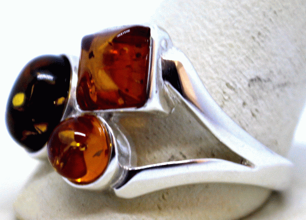 | Baltic Amber Ring - Multy Color 11 $36.95 This is beautiful Baltic Amber ring hand set in sterling silver. Size of the ring is 8.5; size of the stone(s) is 0.7''. This beautiful Baltic Amber has been popular throughout the World for Centuries and is reflected in many of the regions folk tales. Amber Jewels are actually pieces of petrified tree sap and found in only three areas throughout the World. Occasionally, you may find pieces of insects or plants trapped inside these jewels but they are quite rare. Amber has a unique quality of being light enough to float on water and was originally explained through folk tales as being gifts from the young maiden Ambrella to her parents after she was kidnapped by the Prince of the seas. All our amber is from the Baltic Sea and it is set in sterling silver.